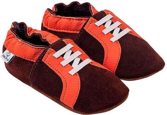 Paputki są idealne dla maluchów próbujących stawiać swoje pierwsze kroki, jak również dla tych, którzy niedawno posiedli umiejętność samodzielnego chodzenia. Experci medyczni na całym świecie uważają, że nauka chodzenia i chodzenie boso jest najzdrowszym rozwiązaniem dla naszego organizmu. Butki z elastyczną, zamszową podeszwą, wykonane z delikatnej jagnięcej skórki, garbowanej w polskiej garbarni, są optymalnym sposobem dla realizacji tej koncepcji zdrowego chodzenia. Dziecięce stópki w takich butkach rozwijają się harmonijnie, bez ograniczeń sztywnych zapięć i twardych podeszw, otulone jedynie mięciutką, oddychającą skórą naturalną. Od września 2012 roku wnętrze paputków pokrywane jest antybakteryjną powłoką z nanosrebrem. Obuwie tego typu otrzymało prestiżowy "znak Stowarzyszenia Amerykańskich Lekarzy Pediatrów" dla produktu, który wspiera naturalną funkcję stopy. Wyobraź sobie, że stopy Twojego dziecka zaczynają się uczyć chodzenia już na etapie raczkowania! To bardzo ważny etap dla mózgu i jak i dla stóp. W tym właśnie momencie stopy pracują od góry i od dołu. Dlatego powstały Paputki. Aby stopy mogły łatwo się rozwijać. Aby umożliwić zdrowy rozwój stóp, dzieciom powinno się jak najczęściej ścigać buty i zachęcać je do chodzenia na boso. Zapewnia to nie tylko przyjemne uczucie pod podeszwą stopy Twojego dziecka, ale również stabilizuje i wzmacnia muskulaturę. Stopa ma wówczas bezpośredni kontakt z podłożem i lepiej odbiera wszelkie bodźce. Dlatego w sytuacji kiedy jest to potrzebne, jak np. w żłobku, przedszkolu, w odwiedzinach, paputki chronią nóżki przed zimnem, skaleczeniem i bólem. Wyprodukowane w Polsce Wykonane z najwyższej jakości miękkiej i elastycznej skóry jagnięcej Mają miękkie, zamszowe i antypoślizgowe podeszwy Mają bardziej spłaszczone noski, gdyż palce stópek potrzebują miejsca Łatwo je założyć i zdjąć z nóżki Pewnie trzymają się stopy Są neutralne dla mięśni stopy, górna jak i dolna strona paputków ułatwia kontakt z podłożem Są bardzo lekkie "- Jakie błędy robią rodzice przy kupowaniu butów? - Słuchają starych prawd, że dobry but powinien być wysoki, mieć twardą podeszwę i sztywny zapiętek. A dla dziecka chodzenie w czymś takim przypomina marsz w butach narciarskich! Rodzice robią tak, ponieważ chcą zabezpieczyć dziecko. A lepiej dać maluchowi i jego stopom maksimum swobody - pozwolić mu poszaleć." Fragment rozmowy z Pawłem Zawitkowskim, fizjoterapeutą NDT-Bobath (miesięcznik "Rodzice") "Nie jest wskazane zakładanie dziecku sztywnych butów w domu, tak jak nie zakładamy sztywnych rękawic na ręce. Stopa nie potrzebuje wspomagania, lecz ruchomości i swobody. Dzieci uwielbiają biegać boso i chyba wiedzą co robią. Chodzenie bez bucików to doskonałe ćwiczenie dla małych nóżek, palce swobodnie się zginają, co pomaga w kształtowaniu się mięśni i sklepienia stóp..." Fragment wypowiedzi dr med. Iwony Jańczewskiej (specjalista pediatra) dla Mamopedia.pl "Nie warto inwestować w buciki gorszej jakości, których używanie nie wyjdzie naszemu dziecku na zdrowie. Powinniśmy wiedzieć, jak wiele zależy od kupna butów, "nawet" jeśli są to tylko buciki po domu. To właśnie buciki po domu bardzo często są zaniedbywane. Nierzadko myślimy, że jeśli kupiliśmy już dziecku dosyć drogie buty do chodzenia po dworze, to buciki po domu mogą być tanie i byle jakie... Nic bardziej błędnego! Bo w gruncie rzeczy w jakim obuwiu dziecko chodzi najwięcej w ciągu dnia?" Małe stópki - Wielka odpowiedzialność. Olga A. Guenthoer (Parenting.pl) Rozmiar: M Długość wkładki: 13,8 cm Wiek: 12-18 miesięcy Długość wkładki wewnętrznej mierzona jest w środku buta od pięty do szwów przed palcami. Prawidłowo dobrany but powinien być dłuższy od stopy o 6-10 mm w zależności od kształtu czubka i układu palców oraz ze względu na przesuwanie się stopy w bucie w czasie chodzenia. Pamiętaj aby mierzyć Twojemu dziecku stopę kiedy stoi - jej wymiary są większe pod wpływem ciężaru ciała.