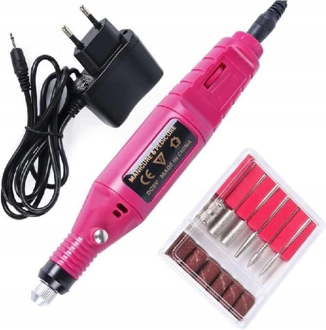 Profesjonalna Mini Frezarka do Manicure i Pedicure Różowa + Komplet 6 Frezów Hc-338 Piaseczno