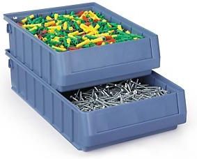 Duża pojemność dzięki prostym kątom. Przegródki dostępne oddzielnie. Możliwość układania w stosy: wzmocnione krawędzie. Możliwość podziału na komory: nacięcia co 44 cm umożliwiające dodawanie przegródek. Solidny: wykonany z polipropylenu.