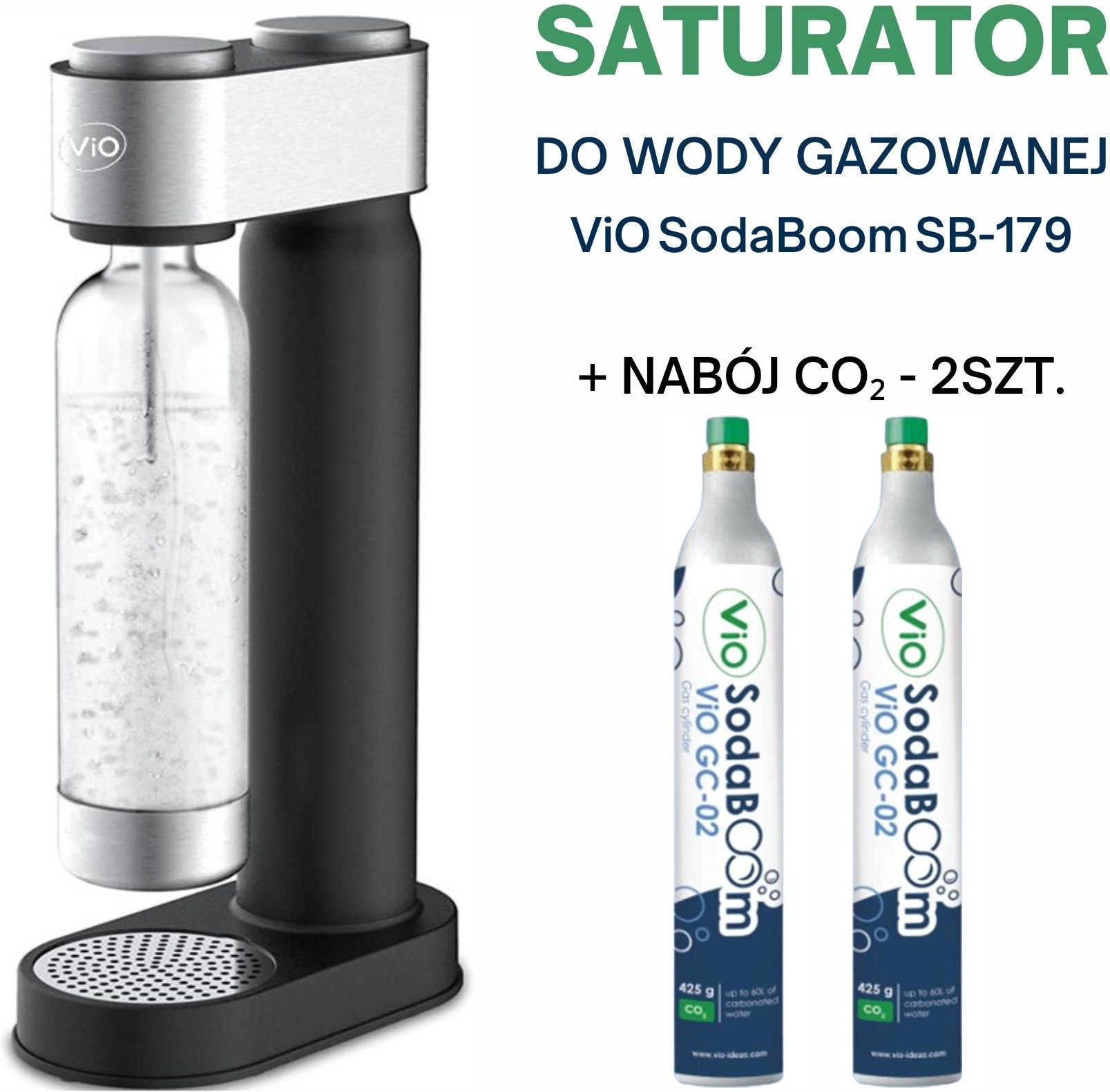 Saturator do wody ViO SodaBoom SB-179 + 2 Naboje CO2 425 g w zestawie Piaseczno