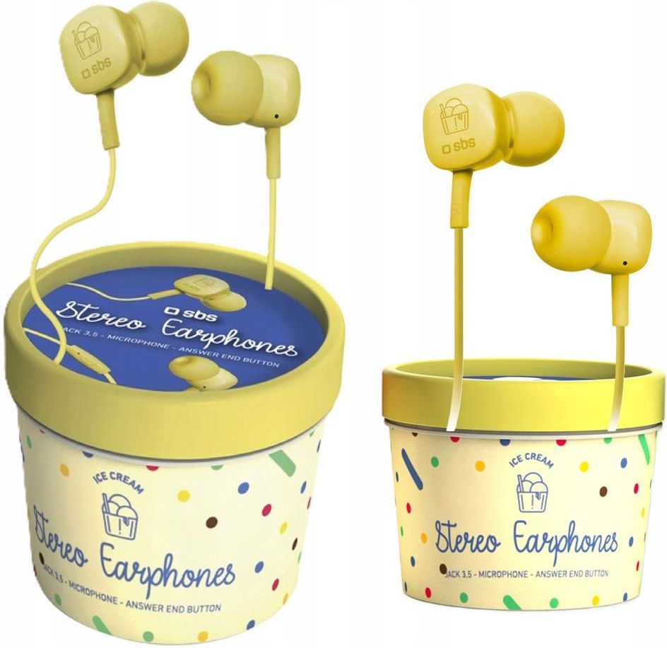 Słuchawki dokanałowe SBS Ice Cream Żółty Transmisja bezprzewodowa: Nie Aktywna redukcja szumów (ANC): Nie Regulacja głośności: Nie Pasmo przenoszenia min. [Hz]: 20 Pasmo przenoszenia max. [Hz]: 20000 Dynamika [dB]: Brak danych Typ słuchawek: Dokanałowe Dedykowane: do PC, Do telefonów, TV - Hi-Fi …