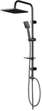 kolor: czarny mat, wysokość całkowita: 1020 mm, rozstaw kołków: regulowany, drążek: okrągły 25 mm ze stali nierdzewnej, deszczownia: kwadratowa 25x25 cm, ABS, rączka: 1-funkcyjna, ABS, przełącznik: ceramiczny mosiądz, chrom, mydelniczka: ABS chrom, wąż prysznicowy: 150 cm, wąż przyłączeniowy: 50 …