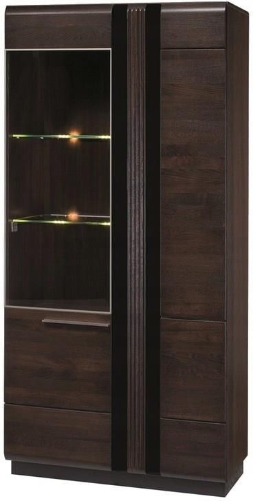 Witryna Porti 12 dąb czekoladowy Witryna 2-drzwiowa do salonu i pokoju dziennego. Doskonała do ekspozycji ulubionych książek i pamiątek. Pojemna witryna z wieloma półkami pozwoli uporządkować i poukładać podręczne rzeczy, którymi chcemy się pochwalić i nacieszyć oczy. Dodatkowe, zamykane półki …