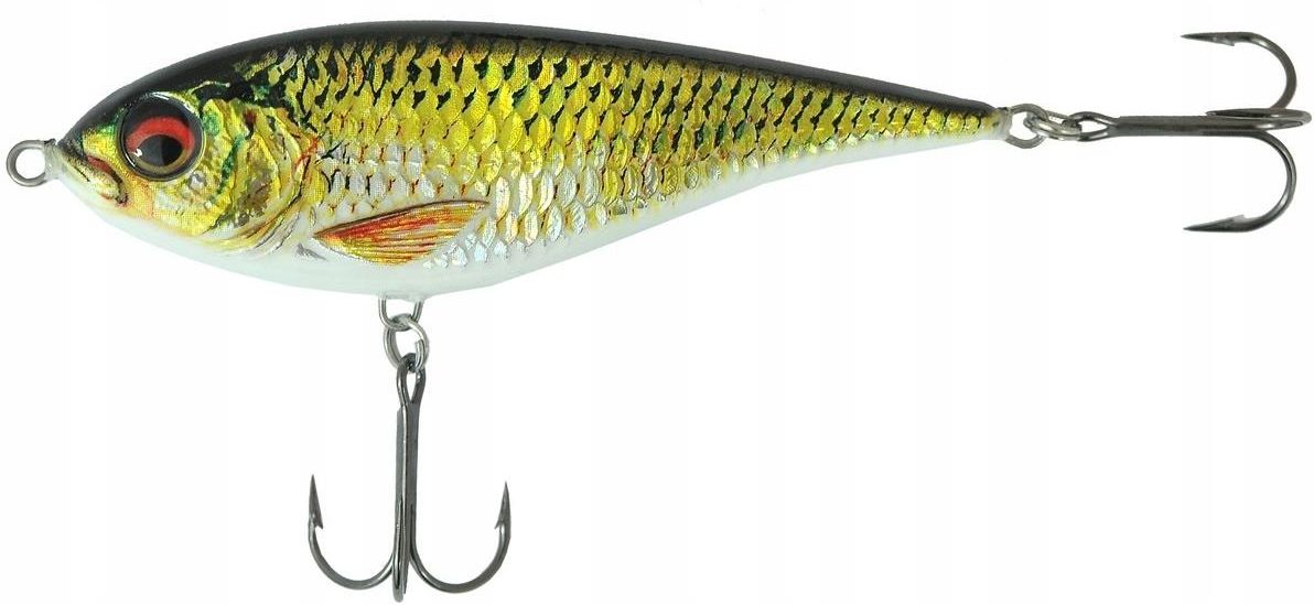 WOBLER BEZSTEROWY JAXON Firma: JAXON Model: VD-SN11SPC Seria: SAMSON NATURE 3D Waga: 36g Długość: 11cm Typ: S-tonący Głębokość zanurzenia: 0,5m – 1,5m Unikatowa seria jerków SAMSON NATURE 3D łączy w sobie wszystkie cechy nowoczesnej, niezawodnej przynęty spinningowej. Perfekcyjna praca, przetestowana przez profesjonalnych wędkarzy i unikalne wzornictwo z wykorzystaniem technologii wykończenia 3D pozwoliły osiągnąć niespotykany dotąd efekt detali, takich jak łuski, pokrywy skrzelowe, płetwy oraz linie boczne. Zastosowaliśmy wzmocnione, wykonane w technologii Hi carbon, czarne kotwice VMC 9650 Black Nickel. Wszystkie towary na aukcjach posiadamy na naszym magazynie