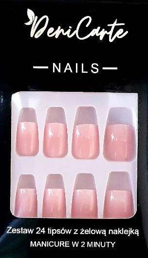 Deni Carte Tipsy Sztuczne Paznokcie Z Żelową Naklejką Square Ombre 24Szt+Żelowa Naklejka Piaski