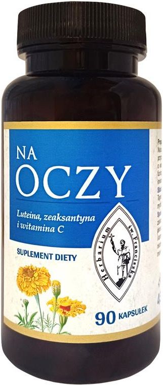 Herbarium św. Franciszka | NA OCZY Luteina, zeaksantyna i witamina C 90kaps. Preparat polecany dla osób, które chcą zadbać o wzrok i jakość widzenia. Naturalne połączenie ekstraktów roślinnych oraz witaminy C. Aksamitka przyczynia się do poprawy ostrości wzroku. Borówka czarna zawiera składniki o …