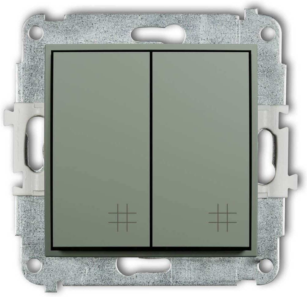 NOWA KOLORYSTYKA SERII ICON Seria ICON została rozszerzona o nową paletę kolorów mechanizmów i ramek pośrednich, w której znajdują się odcienie: taupe (60), szałwiowy (61), łososiowy (62), terakota (63) oraz navy blue (64). KARLIK ICON Łącznik podwójny krzyżowy szałwiowy 61IWP-66 Producent: KARLIK …