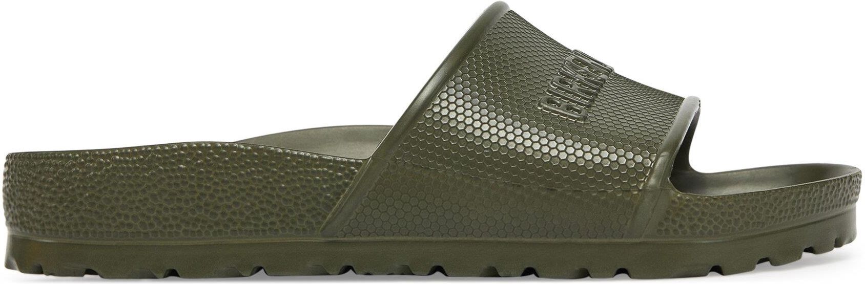 Klapki BIRKENSTOCK Barbados EVA Regular khaki reprezentują połączenie komfortu i nowoczesnych technologii, tworząc praktyczne rozwiązanie na co dzień oraz do aktywności rekreacyjnych. Model ten zapewnia wygodę i wydajność dzięki zastosowaniu specjalistycznych materiałów oraz precyzyjnie dobranej amortyzacji. Jednolita konstrukcja z pianki EVA Materiał cholewki oraz podeszwa zewnętrzna w modelu BIRKENSTOCK Barbados EVA Regular wykonane zostały z pianki EVA, która zapewnia lekkość oraz odporność na odkształcenia. Jednoczęściowa budowa gwarantuje trwałość oraz odporność na działanie wody. Taka konstrukcja zdecydowanie ułatwia utrzymanie higieny klapek podczas użytkowania na basenie, plaży czy w codziennych sytuacjach. Technologia amortyzacji EVA Zastosowana w tym modelu pianka EVA odpowiada za skuteczną amortyzację, istotnie zwiększając komfort codziennego użytkowania. Struktura materiału skutecznie niweluje mikrodrgania, chroniąc stopy przed nadmiernym obciążeniem przy każdym kroku. Specjalnie opracowany kształt podeszwy wspiera naturalny ruch stopy, co przekłada się na wygodę nawet podczas wielogodzinnego noszenia. Przeznaczenie do aktywności i codziennego noszenia Klapki Barbados EVA Regular to model stworzony z myślą o osobach poszukujących uniwersalnego obuwia rekreacyjnego. Właściwości materiału sprawiają, że doskonale sprawdzają się zarówno w warunkach mokrych, jak i suchych. Bezproblemowe użytkowanie w różnych środowiskach potwierdza funkcjonalność tego rozwiązania zarówno podczas relaksu, jak i po treningu. Klapki BIRKENSTOCK Barbados EVA Regular khaki - cechy: Jednoczęściowa konstrukcja z pianki EVA zapewniająca lekkość oraz elastyczność; Materiał cholewki odporny na działanie wody i ścieranie; Podeszwa zewnętrzna z pianki EVA gwarantująca skuteczną amortyzację; Struktura pianki niwelująca mikrodrgania podczas chodzenia; Kształt podeszwy wspierający naturalny ruch stopy; Łatwe utrzymanie higieny w warunkach basenowych i plażowych; Wysoka odporność na odkształcenia pod wpływem nacisku; Uniwersalne zastosowanie do aktywności i codziennego użytku; Model dedykowany osobom ceniącym wygodę przez cały dzień; Technologia amortyzacji poprawiająca komfort każdego kroku.