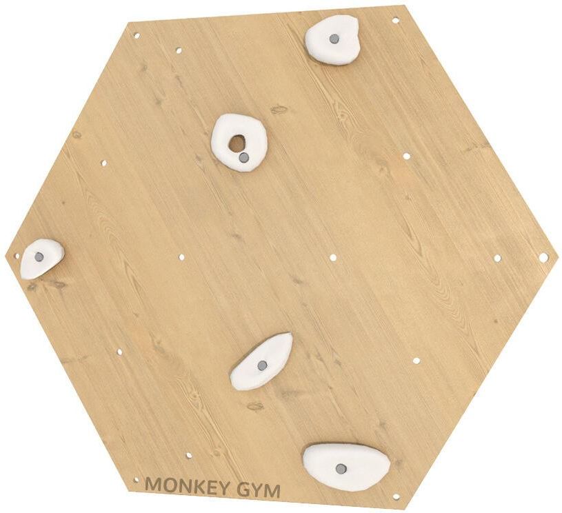Moduł ścianki wspinaczkowejModuł ścianki wspinaczkowej składa się ze sklejki, uchwytów i mocowań. Sklejka z twardego drewna jest gładka i szlifowana, a przede wszystkim jest niezwykle wytrzymałym materiałem. Ścianka wspinaczkowa może wytrzymać obciążenie do 100 kg. Każdy panel posiada wstępnie wywiercone otwory, w które wkłada się nakrętki pazurowe w celu wygodnego i bezpiecznego zamocowania chwytów wspinaczkowych. System mocowania paneli do ściany za pomocą kołków rozporowych i śrub w rogach panelu maskuje wszelkie nierówności ściany i umożliwia częste zmiany rozmieszczenia chwytów wspinaczkowych na panelach. Panele ścienne są pomalowane farbą tablicową na bazie wody, która jest bezpieczna dla dzieci. Kamienie wspinaczkowe są wykonane ze specjalnej żywicy, która jest zatwierdzona i bezpieczna dla dzieci. Różne kształty i rozmiary kamieni mogą być używane do tworzenia różnych ścieżek wspinaczkowych.ELEMENTY ZESTAWU:1 deska wspinaczkowa wykonana ze sklejki o grubości 1,5 cmChwyty wspinaczkowe - 5 sztukMateriał mocujący do przymocowania panelu do ścianyCzęści do przymocowania uchwytów do paneluWAŻNE!Zestaw odpowiedni dla dzieci w wieku od 3 lat i dorosłychDopuszczalne obciążenie: 100 kgWymiary sześciokątnej płyty: 75 x 86,6 cmGrubość płyty: 1,5 cmMontaż: Montaż na ścianieZalecenia producenta: Dzieci w wieku od 3 do 7 lat powinny ćwiczyć wyłącznie pod nadzorem rodziców
