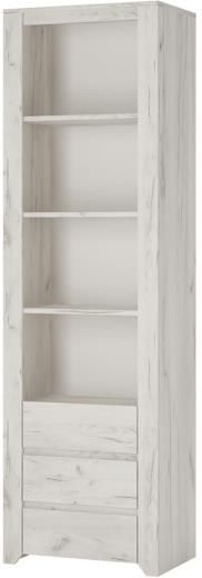 Regał z półkami i szufladami z kolekcji Angel, producenta Meble Wójcik, łączy funkcję przechowywania z funkcją ekspozycji. Jego wnętrze zagospodarowano za pomocą otwartych półek na różne dziecięce skarby, a także za pomocą praktycznych szuflad wysuwanych na prowadnicach rolkowych. Cały regał ma prostą bryłę, pozbawioną wystających uchwytów meblowych, co ułatwia utrzymanie go w czystości. Zalety regału z szufladami Angel Regał na książki i zabawki Angel został wykonany z wysokiej jakości płyty laminowanej, odpornej na działanie wilgoci czy uszkodzenia mechaniczne. Mebel jest łatwy w czyszczeniu i niewymagający w pielęgnacji. Korzysta z systemu bezuchwytowego, który podkreśla jego minimalistyczny design. Wnętrze bryły regału podzielono na strefę zamkniętą z szufladami oraz strefę otwartą z trzema półkami, na których można ustawić pudełka do segregacji dziecięcych skarbów. Jak wygląda regał do pokoju dziecięcego Angel? Prezentowany nowoczesny regał na zabawki i książki z kolekcji Angel może pochwalić się nie tylko prostą bryłą, która nie przytłacza aranżacji, ale również neutralną kolorystyką, która sprawdza się w każdym dziecięcym pokoju. Wybarwienie na dekor Dąb White Craft sprawia, że mebel świetnie komponuje się w różnych wystrojach wnętrz, współgrając również z bardziej wyrazistymi kolorami. Dzięki jasnej kolorystyce regał rozświetla i optycznie powiększa mały pokój, zapewniając aranżacji efekt przestronności. Wymiary regału Szerokość: 56 cm Głębokość: 40,2 cm Wysokość: 190,5 cm Dostępny kolor Dab White Craft