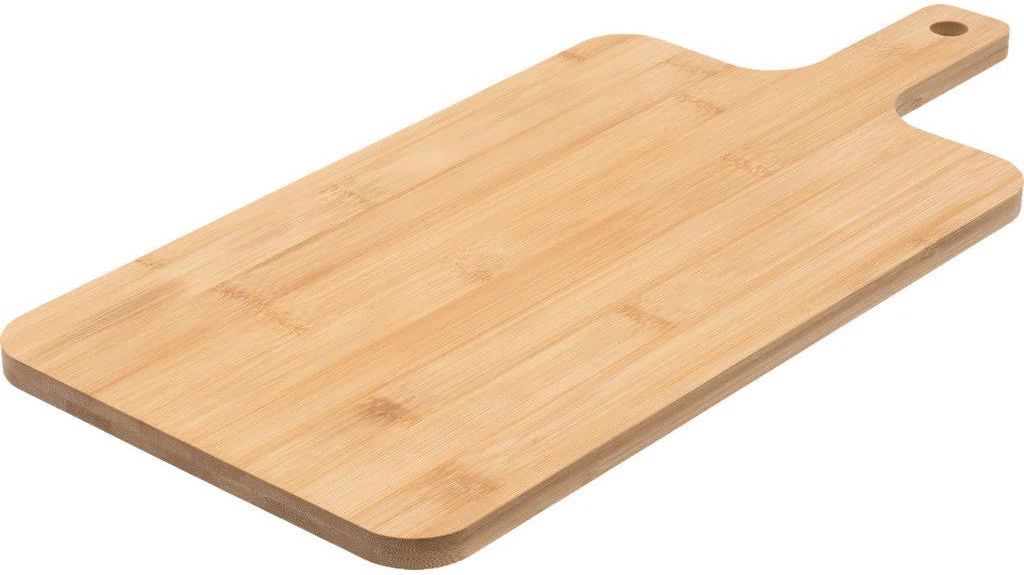 Deska do krojenia z bambusa. Stylowa deska do krojenia świetnie sprawdza się również do serwowania żywności. Ma uchwyt z otworem do zawieszenia i jest wykonana z bambusa – wytrzymałego materiału delikatnego dla noży. Zaleca się mycie ręczne. Wymiary: Dł. 43 x szer. 20 cm Produkt wykonany z bambusa Uchwyt z otworem do zawieszenia
