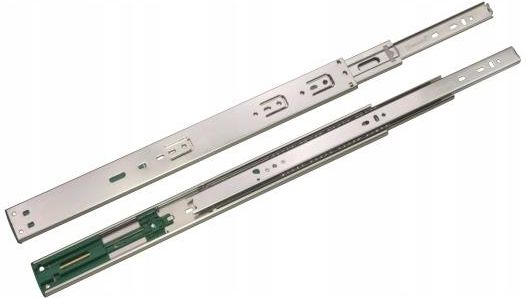 Sevroll prowadnica kulkowa L600 P/W cichy domyk Cena dotyczy kompletu prowadnic: lewej oraz prawej. Cechy: długość nominalna prowadnicy: 600mm materiał wykonania: metal wysokość: 45mm grubość: 12,7mm udźwig: 30kg informacje dodatkowe: cichy domyk, pełen wysuw
