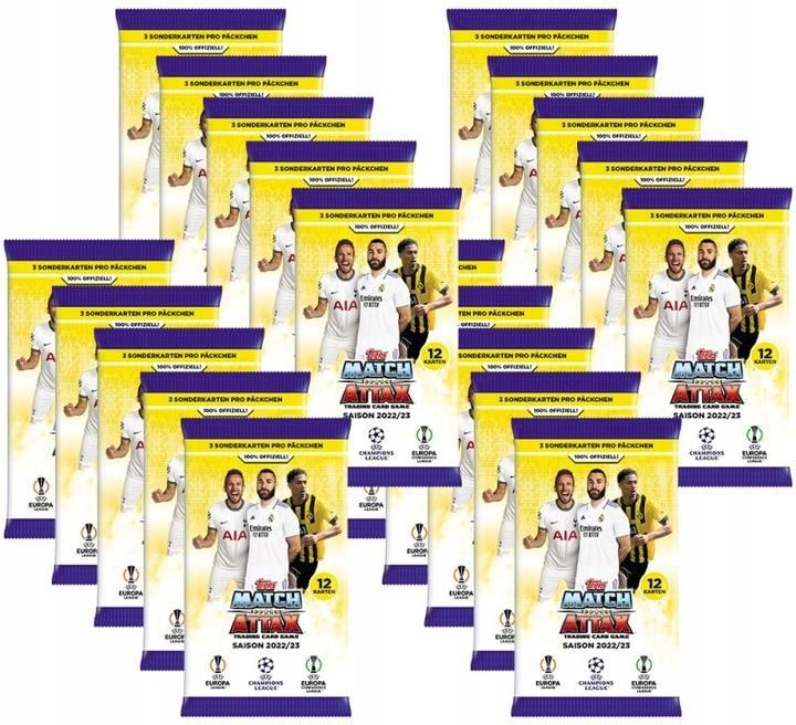Topps Match Attax Champions League 2022 / 2023 Saszetka Zawartość: 20 saszetek (240 kart.) NOWA kolekcja Match Attax 2022/2023 jest większa i lepsza niż kiedykolwiek! UEFA Champions League Match Attax powraca z kolejnym ekscytującym sezonem piłkarskich rozgrywek. Do zebrania w kolekcji tegorocznej …