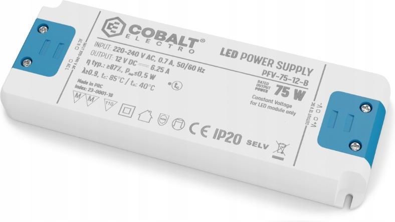Zasilacz LED płaski DC12V 75W 6.25A CobaltElectro PFV-75-12 Piaski
