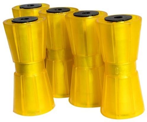Pięć żółtych rolek dennych do przyczep podłodziowych. Oryginał Knott