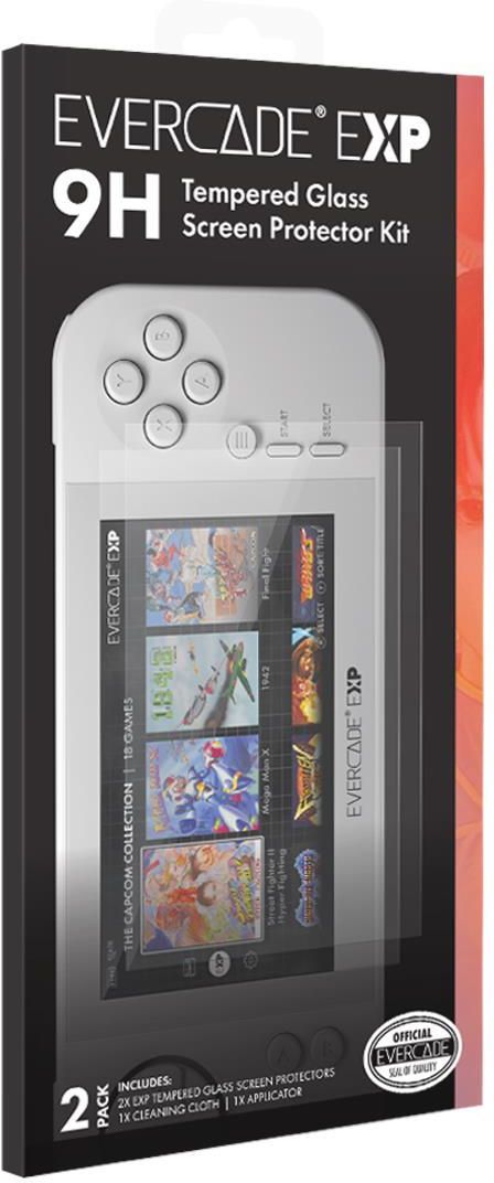 Zestaw szkieł ochronnych do retro handhelda Evercade EXPOficjalny zestaw folii ochronnych zapewnia ekranowi Twojej retro konsoli przenośnej Evercade EXP pełną ochronę, której potrzebuje. Zestaw jest kompatybilny zarówno ze standardową, jak i limitowaną edycją konsoli Evercade EXP i zawiera dwie hartowane folie ochronne, ściereczkę do czyszczenia i aplikator - wszystko zaprojektowane specjalnie dla tej retro konsoli do gier.Wytrzymała warstwa ochronna wykonana ze szkła hartowanego jest odporna na zarysowania i odciski palców, jest bardzo cienka, a mimo to może pochwalić się twardością 9H. Dodatkowo posiada powłokę oleofobową, która odpycha tłuszcz, a dzięki dołączonemu aplikatorowi idealnie przylega do ekranu konsoli bez pozostawiania nieestetycznych pęcherzyków powietrza. SPECYFIKACJA:- Dwa hartowane szkła ochronne o twardości 9H.- Odporne na zarysowania i odciski palców.- Wyjątkowo cienkie.- Bardzo wytrzymałe na uszkodzenia mechaniczne.- Wysoka przezroczystość.- Powierzchnia oleofobowa.- Łatwa instalacja bez pęcherzyków powietrza.- W zestawie ściereczka do czyszczenia i aplikator.