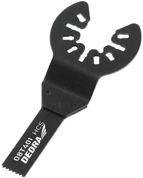 DEDRA Brzeszczot do drewna 10x30mm, zęby 1.4mm, 08T401 Charakterystyka produktu: Brzeszczot do drewna do narzędzia wielofunkcyjnego DEDRA 08T401. Umożliwia cięcie drewna i materiałów drewnopochodnych. Wąski brzeszczot o zapewnia dużą precyzję cięcia zwłaszcza w miejscach trudno dostępnych np. wpustów w drewnie. Szerokość brzeszczotu wynosi 10mm a jego długość 30mm. Wykonany ze stali wysokowęglowej HCS. Skuteczne cięcie zapewnia odpowiednio przygotowana powierzchnia tnąca, czyli zęby o zagęszczeniu 18TPI (18 zębów na cal). Dzięki uniwersalnemu mocowaniu końcówki roboczej pasuje do większości narzędzi wielofunkcyjnych na rynku. Dane techniczne: Przeznaczenie: do drewna i materiałów drewnopochodnych Szerokość brzeszczotu: 10mm Długość brzeszczotu: 30mm Długość zębów: 1,4mm Materiał wykonania: stal wysokowęglowa HCS Nr katalogowy: 08T401