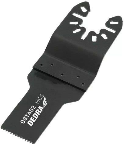 Brzeszczot do drewna DEDRA HCS 08T402 Narzędzie wielofunkcyjne to fantastyczna sprawa. Dzięki oscylacyjnym ruchom końcówek roboczych można precyzyjnie i szybko ciąć czy szlifować. O tym czy będziemy zadowoleni z efektu oraz czy urządzenie będzie wydajnie pracować dużą rolę będzie odgrywać nie tylko nasze doświadczenie, ale również dobrej jakości końcówki robocze. Marnej jakości brzeszczot może zbyt mocno obciążać urządzenie, nie chcieć ciąć materiału, a w najgorszym przypadku uszkodzić cięty element nad którym pracujemy. Dlatego tak, ważnym jest, aby brzeszczoty do multinarzędzia były dobrej jakości i przystosowane do cięcia danego materiału. Widząc potrzebę zapewnienia najlepszych brzeszczotów DEDRA do swojej oferty wprowadziła nową linię brzeszczotów do narzędzia wielofunkcyjnego przeznaczonych do cięcia materiałów, które każdy majsterkowicz napotka w swoim domu czy warsztacie. Brzeszczot do drewna do narzędzia wielofunkcyjnego DEDRA 08T402. Umożliwia cięcie drewna i materiałów drewnopochodnych. Wąski brzeszczot o zapewnia dużą precyzję cięcia zwłaszcza w miejscach trudno dostępnych np. wpustów w drewnie. Szerokość brzeszczotu wynosi 20mm a jego długość 40mm. Wykonany ze stali wysokowęglowej HCS. Skuteczne cięcie zapewnia odpowiednio przygotowana powierzchnia tnąca, czyli zęby o zagęszczeniu 18TPI (18 zębów na cal). Dzięki uniwersalnemu mocowaniu końcówki roboczej pasuje do większości narzędzi wielofunkcyjnych na rynku. Dane techniczne: Przeznaczenie: do drewna i materiałów drewnopochodnych Materiał wykonania: stal wysokowęglowa HCS Długość całkowita [mm] 40 Długość robocza [mm] 20x40 Ilość zębów na cal [TPI] 18 Liczba w komplecie 1