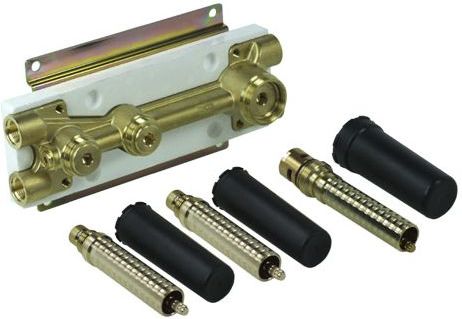 2 zawory z przełącznikiem do montażu ściennego Dornbracht 3569597090 Element podtynkowy - podtynk, mosiądz - 2 przyłącze gwint wewnętrzny 1/2&&quot (zimna/ciepła) - 2 odprowadzenia gwint wewnętrzny 1/2&&quot - 2 głowice ceramiczne 1/2&&quot z przedłużalną nasadką - przełącznik z płytkami ceramicznymi i przedłużalną nasadką - 3 nakładki przedłużone - 3 pokrywy ochronne podtynku - 3 pierścienie samouszczelniające wodochronne - zintegrowana izolacja akustyczna - zestaw mocujący Min. głębokość montażu (wraz z xGrid szyną montażową) dla serii Symetrics 105 mm (Tylna krawędź szyny montażowej do g&órnej krawędzi gotowej ściany)