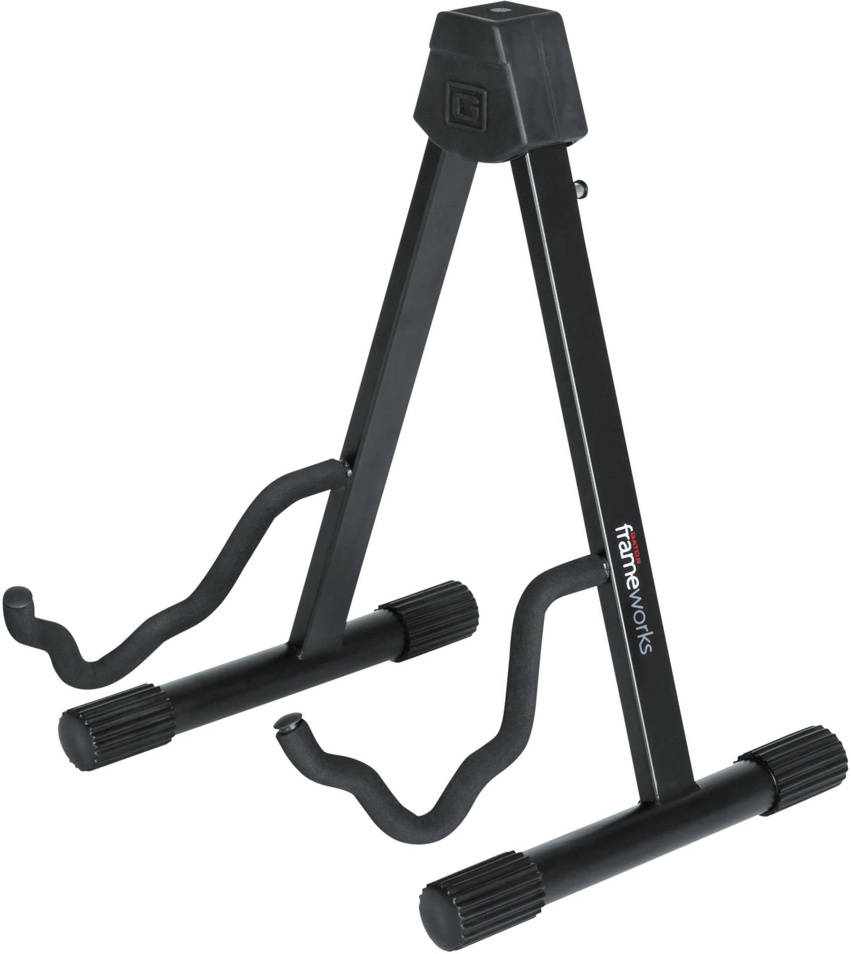 Ramy Stojak na gitarę w stylu „A” z wyprofilowaną kołyską do montażu na gitarze elektrycznej, basowej, drednaught, gitarze akustycznej, ukulele lub skrzypcach Cechy Mieści jedną gitarę elektryczną, akustyczną, ukulele lub skrzypce Przyjazna gumowana wyściółka kołyski Regulowana szerokość dla mniejszych instrumentów Kompaktowa składana konstrukcja Wytrzymała stalowa konstrukcja Bezpieczny dla standardowych wykończeń poliuretanowych, niezalecany dla wykończeń vintage/lakierów