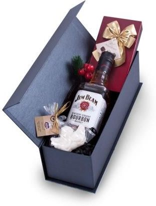 Przedstawiona oferta ma charakter informacyjny, nie stanowi oferty handlowej w rozumieniu Art.66 par.1 Kodeksu Cywilnego. Realizacja zamówień przedstawionego produktu: listopad-grudzień 2019. Zamówienia prosimy składać drogą mailową: info@pudelkaprezentowe.pl Świąteczny zestaw prezentowy z kultowym amerykańskim burbonem nr53 Zestaw zapakowany jest w eleganckie grafitowe pudełko z wypełnieniem zamykane na magnes, przyozdobione wstążką i zapakowane w celofan. Na życzenie możemy zmienić kolorystykę dekoracji, dołączyć bilecik z życzeniami lub zamienić produkty. Wymiary pudełka: 10x10x34cm W skład zestawu wchodzi: Ręcznie wykonane pudełko wykonane z grubej tektury i papieru ozdobnego zamykane na magnes Bourbon whiskey to sama słodycz o subtelnym aromacie oraz lekko słodkawym smaku z nutką karmelu i wanilii Jim Beam Kentucky Straight Bourbon Whiskey 40% 0,5l* Bombonierka belgijskich pralinek 125g Cukrowy aniołek o smaku korzennym wykonywany ręcznie w polskiej manufakturze * Alkohol w zestawie dodawany jest gratis