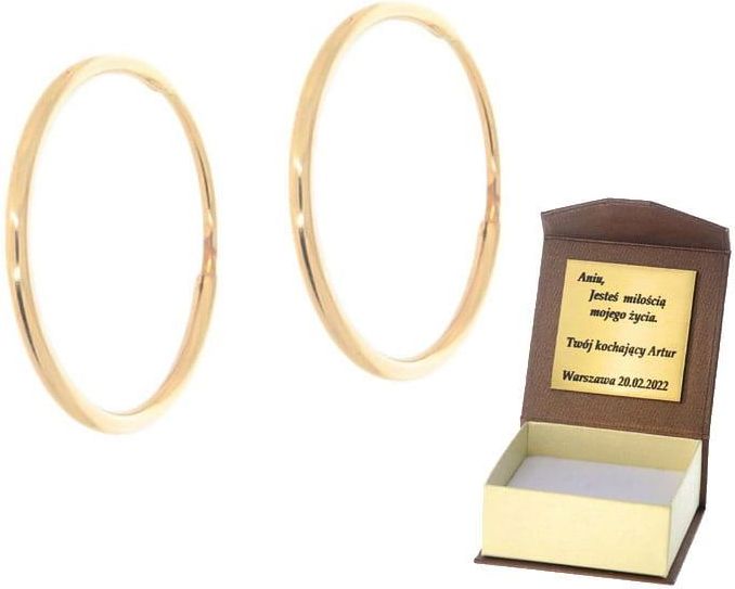 Złote Kolczyki koła Próby 585 Wymiary: średnica 1,7 cm grubość 1,2 mm Złote kolczyki przedstawione w naszej ofercie zostały wykonane z wysokiej jakości złota próby 585. Biżuteria została stworzona z pasją i wielką precyzją, aby zapewnić komfort jej użytkowania. Złote kolczyki dodają kobiecie pełnego blasku. Biżuteria ta stanie się zapewne Twoją ulubioną, wykorzystywaną na przeróżne okazje. W naszej bogatej ofercie znajdują się także inne kolczyki, różniące się swym kształtem, wagą a także rodzajem zapięciem. Są to kolczyki z jednym, wieloma kamieniami lub bez kamieni. ŚREDNICA: 1,70 cm MATERIAŁ: ZŁOTO PRÓBA: 585 https://sklep652320.shoparena.pl/userdata/public/gfx/10280.jpg Cena: 398.00 Waga: 0.68 KTD 046 IV 4AU 303265884 W zestawie otrzymujesz: - Nową biżuterię badaną przez Polski Urząd Probierczy - Produkt cechowany zgodnie z polskim Prawem probierczym Dz. U. z 1993 r., Nr 55, poz 249 - Oryginalne firmowe pudełeczko (gratis) - Metkę jubilerską - Na życzenie grawerowaną tabliczkę z dedykacją PRZY ZAKUPIE POWYŻEJ 500 ZŁOTYCH OTRZYMASZ ELEGANCKĄ TOREBKĘ PREZENTOWĄ GRATIS Na życzenie grawerowana dedykacja na tabliczce umieszczonej wewnątrz pudełeczka. W przypadku zakupu powyżej 100 złotych dedykacja gratis. Tabliczka laminowana w kolorze złotym z grawerem dowolnego tekstu w kolorze czarnym. Treść graweru oraz rodzaj pudełeczka należy podać w "wiadomości do sprzedającego" Jeśli nie otrzymamy takiej informacji produkt zostanie zapakowany w standardowe pudełeczko bez dedykacji.