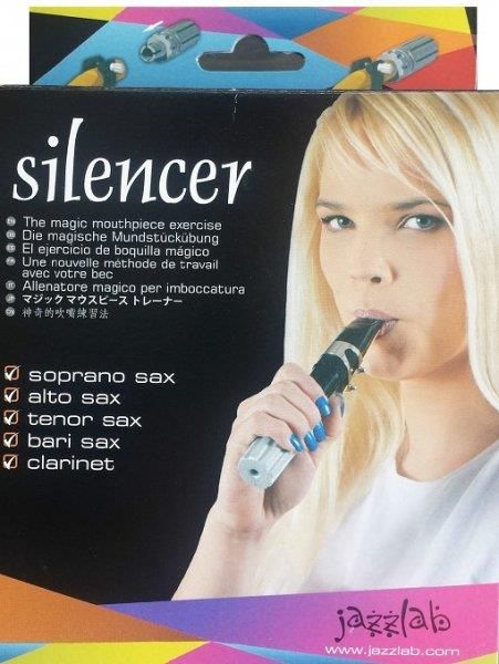 SILENCER MARK II - tłumik do ćwiczeń Poprzez umieszczenie tłumika na ustniku dźwięk jest cichszy o 5 do 10razy dlatego możesz ćwiczyć bardzo cicho w dowolnym czasie- czy w nocy lub w dzień - w każdym miejscu! Silencer Mk II współpracuje z:- Saksofon sopranowy,- Saksofon altowy,- Saksofon tenorowy,- Saksofon barytonowy,- Klarnet Wiele osób jest często zaskoczonych, kiedy uświadamiają sobie,że można wydobywać dźwięki i całe melodie z samego ustnika saksofonowego lub klarnetowego.Jak to brzmi zależy wyłącznie od osoby, która dmucha w ustnik,ponieważ wszystko to co słychać zależy tylko od osoby dmuchającej. Jak możemy to zrozumieć?Wyniki te skłoniły Joe Allard, wielkiego mistrza instrumentówdętych do opracowania nowej metody szkolenia i odpowiednich ćwiczeń,wśród których są ćwiczenia na ustniku.Z tych ćwiczeń Joe Allard udokumentował zadziwiającerezultaty w stosunkowo krótkim czasie.Wśród jego uczniów byli saksofoniści jak David Liebman,Michael Brecker, Stan Getz, Bob Bergi cała sekcja saksofonów Glenna Millera. Poprawa dźwiękuĆwiczenia na ustniku do instrumentów dętych są jednymz najlepszych sposobów aby poprawić dźwięk.Ponadto, można trenować zadęcie, oddychanie i artykulację.Codzienne ćwiczenia - 5 minut - są kluczem do wyższego poziomu dźwiękui intonacji na instrumencie.Przez ćwiczenia na ustniku trenujemy dokładnie te mięśnie,które są kluczowe dla gry na saksofonie lub klarnecie: Na dźwiękNa intonacjęZa efekty specjalne jak vibrato lub podciąganieDla wysokich rejestrów...