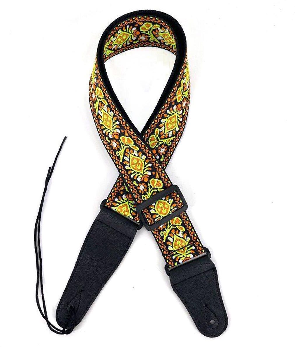 Pas do Gitary - Regulowany - Wzorzysty Jeremi GS - Seria wysokiej jakości pasów gitarowych Jeremi GS-10-5 to uniwersalny pasek, pasujący do gitary basowej, elektrycznej oraz akustycznej, zapewniający wygodę i bezpieczeństwo podczas grania na różnych instrumentach. Wykonanie z trwałych materiałów Pas GS wykonany jest z stylonowo bawełnianej taśmy z kolorowym wzorem graficznym. Taśma ta jest nie tylko trwała, ale także wygodna w użytkowaniu. Końcówki pasa, które montujemy na gitarze, zostały wykonane ze skóry, co dodaje estetycznego wyglądu i zapewnia pewne mocowanie instrumentu. Elementy regulacyjne oraz połączenia między pasem a uchwytami skórzanymi zostały wykonane z twardego tworzywa sztucznego, co zapewnia solidność i trwałość. Dostosowanie i montaż Pas do gitary Jeremi GS jest regulowany, dzięki czemu można łatwo dopasować go do indywidualnych preferencji i rozmiaru użytkownika. Regulowana długość zapewnia szeroki zakres możliwości. Do paska dołączony jest czarny sznurek, który ułatwia montaż pasa do gitar akustycznych, w których znajduje się tylko jeden kołek do paska. Dzięki temu można szybko i łatwo zamontować pas na instrumencie. Specyfikacja: Długość regulowana: 87 - 140 cm Szerokość: 5 cm Wzór: Kolorowy -Żółty wzór