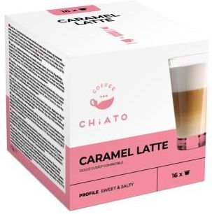 Masz ochotę na coś grzesznie smacznego? CHiATO "Caramel Latte" to z pewnością to! Równowaga solonego karmelu, pełnej smaku kawy i delikatnie słodkiego mleka sprawia, że temu napojowi nie sposób się oprzeć.Właściwości:- Karmelowa, kremowa, bogata i delikatnie słodka- Kawa o pełnym smaku, delikatne mleko i słony karmel zmieszane w jednej kapsułce- Zalecana objętość dla pojedynczej porcji: 150 ml (5/7 kresek na selektorze objętości)- 16 kapsułek na 16 pysznych porcji- Przeznaczona do ekspresów do kawy NESCAFÉ® Dolce Gusto®Składniki: cukier, odtłuszczone mleko w proszku, kawa rozpuszczalna (14,0%), syrop skrobiowy, nieuwodorniony tłuszcz kokosowy, laktoza, sproszkowany korzeń żeń-szenia (0,2%), aromaty, stabilizator (E340), emulgator (E471). Może zawierać śladowe ilości soi i glutenu.Warunki przechowywania: przechowywać w suchym, chłodnym miejscu.***CHiATO: czy to jest rozmowa, czy to jest macchiato? My mówimy, że to jedno i drugie! Zabawa, która zaczyna się od filiżanki kawy. Kremowa, gładka i z odrobiną funku na wierzchu.Przygotuj kawę tak, jak sobie ją wyobrażasz. To Twoja pasja i Twoje dzieło. Poznaj świat kawy i eksperymentuj z odpowiednimi narzędziami. Zanurz się głębiej i twórz doświadczenia, które utrzymują się jak posmak Twojej ulubionej kawy.