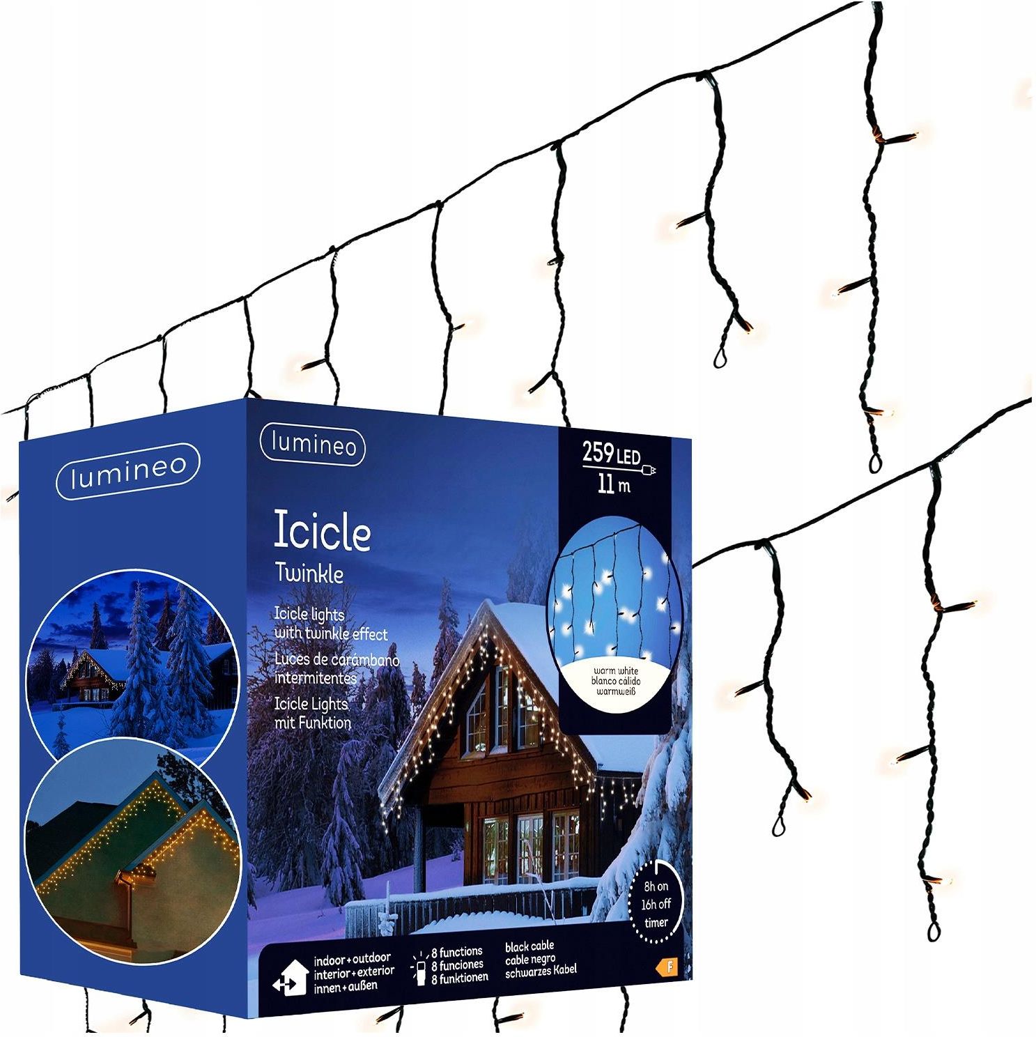 Kurtyna Świetlna Girlanda 259 LED Lampki Zewnętrzne 11m Ciepły Biały FLESH LAMPKI LED KURTYNA 8 FUNKCJI MIGOTANIA DO UŻYTKU WEWNĘTRZNEGO I ZEWNĘTRZNEGO, 11 M OŚWIETLENIE LED DO TWOJEGO DOMU I OGRODU Dodaj magii i uroku swoim przestrzeniom dzięki lampkom LED kurtyna. Z 8 funkcjami migotania, te lampki oferują szeroki wybór efektów świetlnych. Klasyczne ciepłe białe światło oraz wyjątkowa długość 11 m sprawiają, że są idealne zarówno do wnętrz, jak i na zewnątrz. Wysoka jakość wykonania oraz odporność na warunki atmosferyczne gwarantują długotrwałe użytkowanie. DANE TECHNICZNE Długość części świetlnej: 11 m Liczba diod LED: 259 Kolor diod LED: ciepła biała Kolor przewodu: czarny Odległość między diodami: 10 cm Odległość między sznurami: 15 cm Długość przewodu zasilającego: 500 cm Funkcje: 8 funkcji migotania Moc: 6 W Typ zasilania: transformator Klasa IP: IP-44 Zasilacz: EU Zastosowanie: zewnętrzne i wewnętrzne ENERGOOSZCZĘDNE OŚWIETLENIE Lampki LED sople charakteryzują się niskim zużyciem energii, co przekłada się na oszczędność w dłuższym okresie. Diody LED są trwałe i zapewniają długowieczne oświetlenie, dzięki czemu możesz cieszyć się pięknym światłem przez wiele lat. FUNKCJONALNOŚĆ I WIELOZADANIOWOŚĆ Z 8 różnymi funkcjami migotania, lampki LED sople oferują szeroki zakres opcji oświetlenia. Możesz wybrać tryb, który najlepiej odpowiada Twoim potrzebom, od delikatnego światła po dynamiczne migotanie, zapewniając idealne dopasowanie do każdej okazji. INTELIGENTNY TIMER Oszczędzaj energię i zyskaj komfort dzięki wbudowanemu timerowi, który automatycznie zarządza czasem działania lamp. Lampki LED automatycznie włączają się na 8 godzin, a następnie wyłączają na 16 godzin, co zapewnia optymalne wykorzystanie energii i eliminuje potrzebę ręcznego sterowania. Ta funkcja jest idealna dla zapracowanych osób oraz tych, którzy cenią sobie wygodę i energooszczędność. TRWAŁOŚĆ I ODPORNOŚĆ Dzięki klasie ochrony IP-44, lampki LED sople są odporne na warunki atmosferyczne, co sprawia, że są idealne do użytku zarówno na zewnątrz, jak i wewnątrz. Możesz cieszyć się niezawodnym oświetleniem niezależnie od pogody.