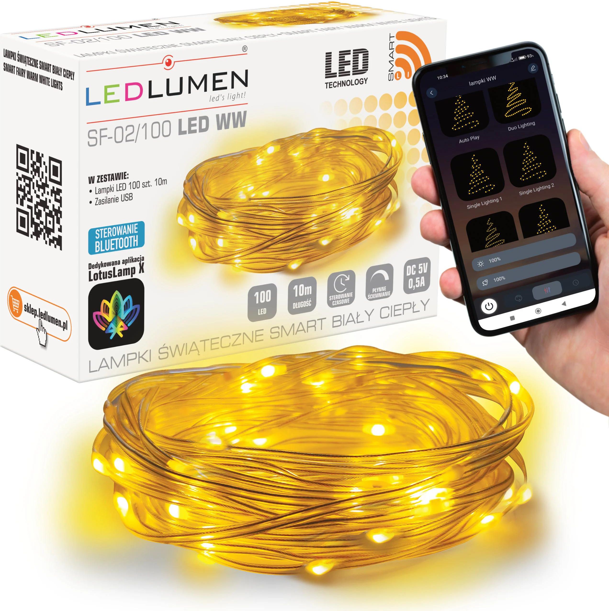 Lampki świąteczne LED girlanda smart SF-02/100 10m USB WW Piastów