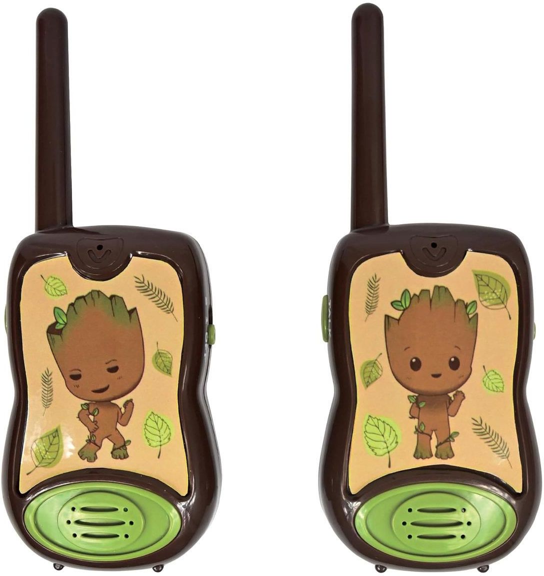 Lexibook Strażnicy Galaktyki: Groot Krótkofalówki Odgrywaj scenki ze znanej bajki Mnóstwo frajdy Wyjątkowe Walkie Talkie dla dzieci ozdobione grafiką tytułowej postaci ze znanej serii Strażnicy Galaktyki. Wysokiej jakości wykonanie oraz staranna grafika sprawią dzieciom wielką frajdę. Dzięki dwóm urządzeniom, które znajdują się w zestawie, dzieci bez problemu mogą porozumiewać się między sobą w trakcie zabawy. Walkie talkie może służyć jako komunikator pomiędzy dziećmi lub pomiędzy dzieckiem a rodzicem. Wyposażono je w proste w obsłudze przyciski, a ich zasięg nadawania wynosi do 200 m w warunkach zewnętrznych. W dodatku klips do paska poprawia przenoszenie i zawieszenie ich na spodniach.
