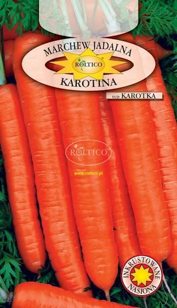 Marchew Karotina 5g INKRUSTOWANE doskonałe walory smakowe NASIONA Marchew Karotina 5g INKRUSTOWANE doskonałe walory smakowe Odmiana wczesna. Tzw. marchew zdrowotna z powodu wyższej niż przeciętna zawartości Beta Carotin odznaczająca się doskonałymi walorami smakowymi. Nadaje się do spożycia na Świeżo, do gotowania, do konserwowania, może być również do krótkiego magazynowania. Długość 18-20 cm. Intensywnie zabarwiony, o smaku słodkim. Możliwy jest wielokrotny wysiew od wiosny do połowy czerwca. Okres wegetacji 125-130 dni.