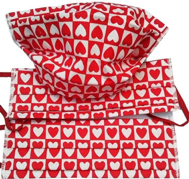 Maseczka maska ochronna na twarz dla dzieci serca serduszka biała czerwona bawełniana 2547 Piastów