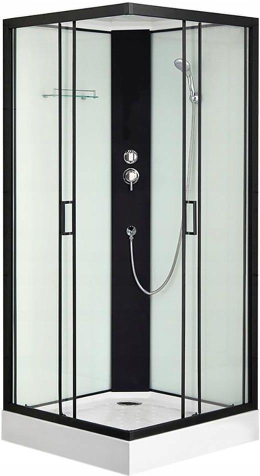 KABINA PRYSZNICOWA Z NISKIM BRODZIKIEM (ZABUDOWANA Z 4 STRON) MODEL: MO-0547-8 SPECYFIKACJA PRODUKTU Wymiary zewnętrzne: 80 x 80 x 215 cm Typ brodzika: niski brodzik Wysokość brodzika (zewnątrz): — Grubość szkła hartowanego: 5 mm Materiał wykonania: Brodzika: Akryl (ABS) Ramy: aluminium (czarny) Ścian tylnych: szyby białe Wyposażenie: Bateria prysznicowa: tak (zawór mieszający, rozdzielacz) Pokrętła pokryte chromem: tak Wielofunkcyjny prysznic ręczny: 1 szt. Deszczownica: 1 szt. Wentylator wyciągowy: 1 szt. Półka na kosmetyki: 1 szt. Światło LED (zamontowane w dachu): 1 szt. (1 kolor – biały) Panel sterowania: tak Radio: 1 szt. Głośnik: 1 szt. . DODATKOWE INFORMACJE Dno brodzika profilowane (częściowo antypoślizgowe) Typ kabiny: kwadratowa Typ drzwi: podwójne przesuwne Węże przyłączeniowe do wody: tak (1/2″) Elementy montażowe: tak
