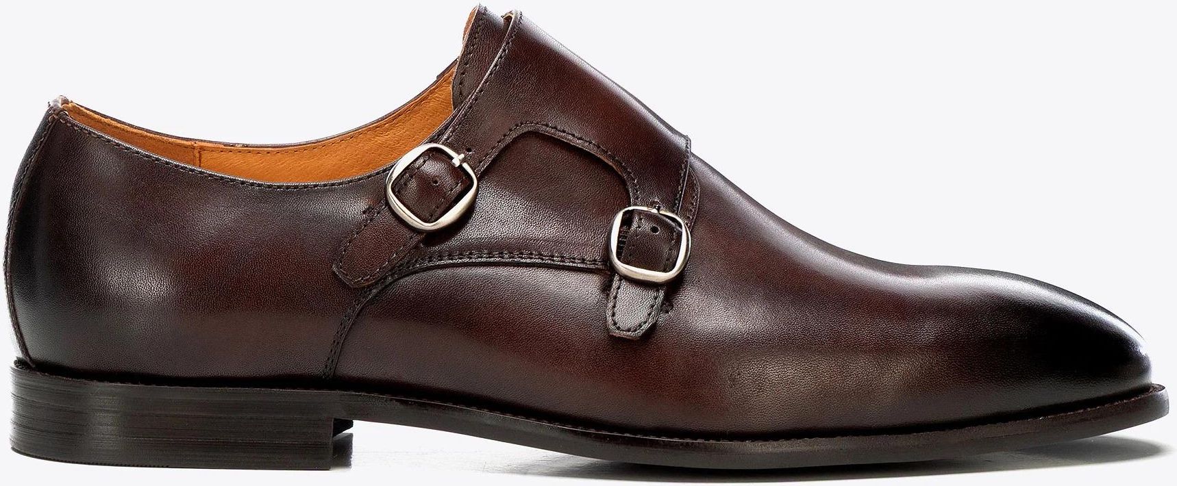 Męskie półbuty double monki ze skóry naturalnej brązowe Piastów