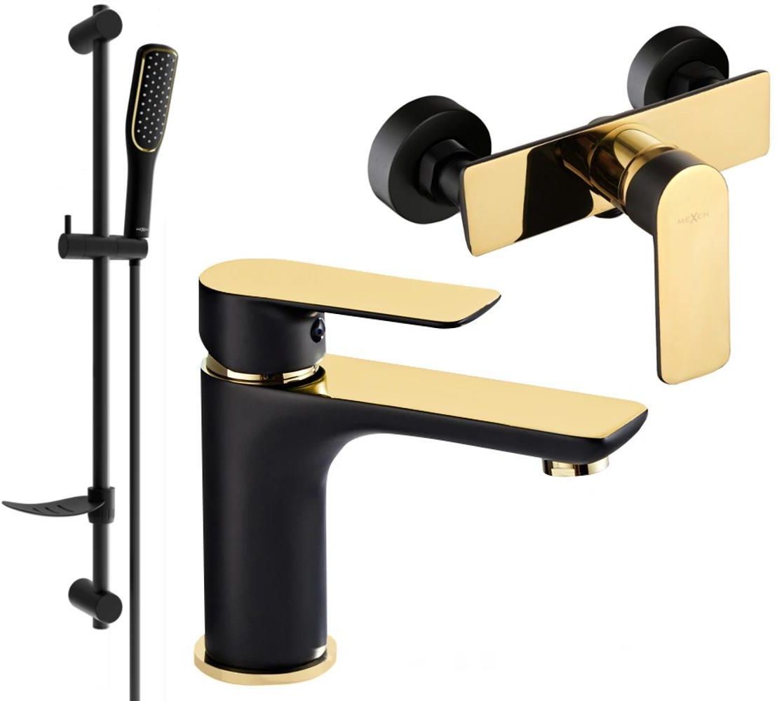 Mexen Alfa DF49 zestaw prysznicowy, czarny/złoty - 745704DF49-75 Specyfikacja produktu: Seria: AlfaKolor: Czarny/ZłotyBateria umywalkowa: TakBateria wannowa: NieBateria prysznicowa: TakBateria podtynkowa: NieZ termostatem: NieZestaw natryskowy: TakZestaw punktowy: NieZestaw na drążku: TakKolumna …