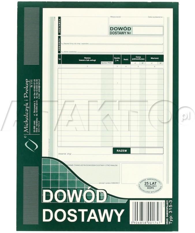 Michalczyk Dowód Dostawy A5 Mp 315-3 Piastów