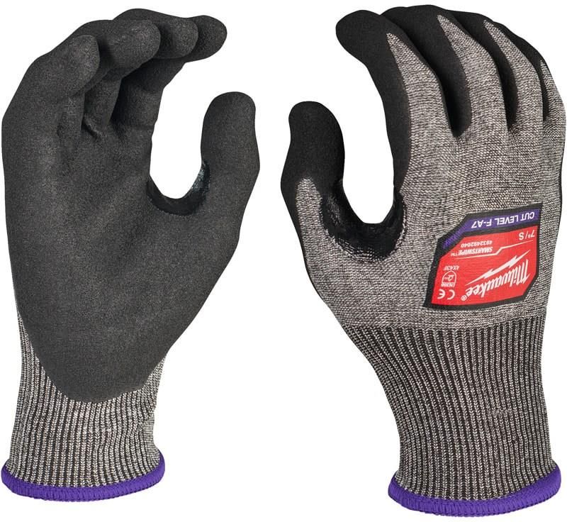 RĘKAWICE ANTYPRZECIĘCIOWE OCHRONA F ROZMIAR L-9 MILWAUKEE 4932492042 Solidne rękawice robocze Milwaukee o najwyższym europejskim poziomie ochrony przed przecięciem – stworzone do pracy w najtrudniejszych warunkach. Dzianina o gęstości 18 oczek gwarantuje wysoką precyzję ruchów i zręczność dłoni. Specjalna powłoka nitrylowa zapewnia wygodę podczas długiej pracy oraz doskonały chwyt, nawet na powierzchniach pokrytych olejem. Oddychająca warstwa wewnętrzna zwiększa komfort noszenia. Dodatkowe wzmocnienie z nitrylu w obszarze pomiędzy kciukiem a palcem wskazującym poprawia trwałość rękawicy w miejscach narażonych na przetarcia. Dzięki technologii SMARTSWIPE™ możliwe jest obsługiwanie ekranów dotykowych bez potrzeby zdejmowania rękawic. Produkt nie zawiera DMF i jest zgodny z wymaganiami certyfikacji Reach. Rękawice można prać w pralce do trzech razy bez utraty właściwości ochronnych. Spełniają normy bezpieczeństwa EN ISO 21420 oraz EN 388:2016 (4X43F), oferując najwyższy poziom ochrony przed przecięciem. Ochrona rękawic z normą 4X43F 4 – odporność na ścieranie (w skali 1–4), X – brak wyniku lub test niewykonany (np. odporność na przecięcie wg starego testu Coup), 4 – odporność na rozdzieranie (w skali 1–4), 3 – odporność na przekłucie (w skali 1–4), F – odporność na przecięcie wg testu TDM/ISO 13997 (w skali od A do F).