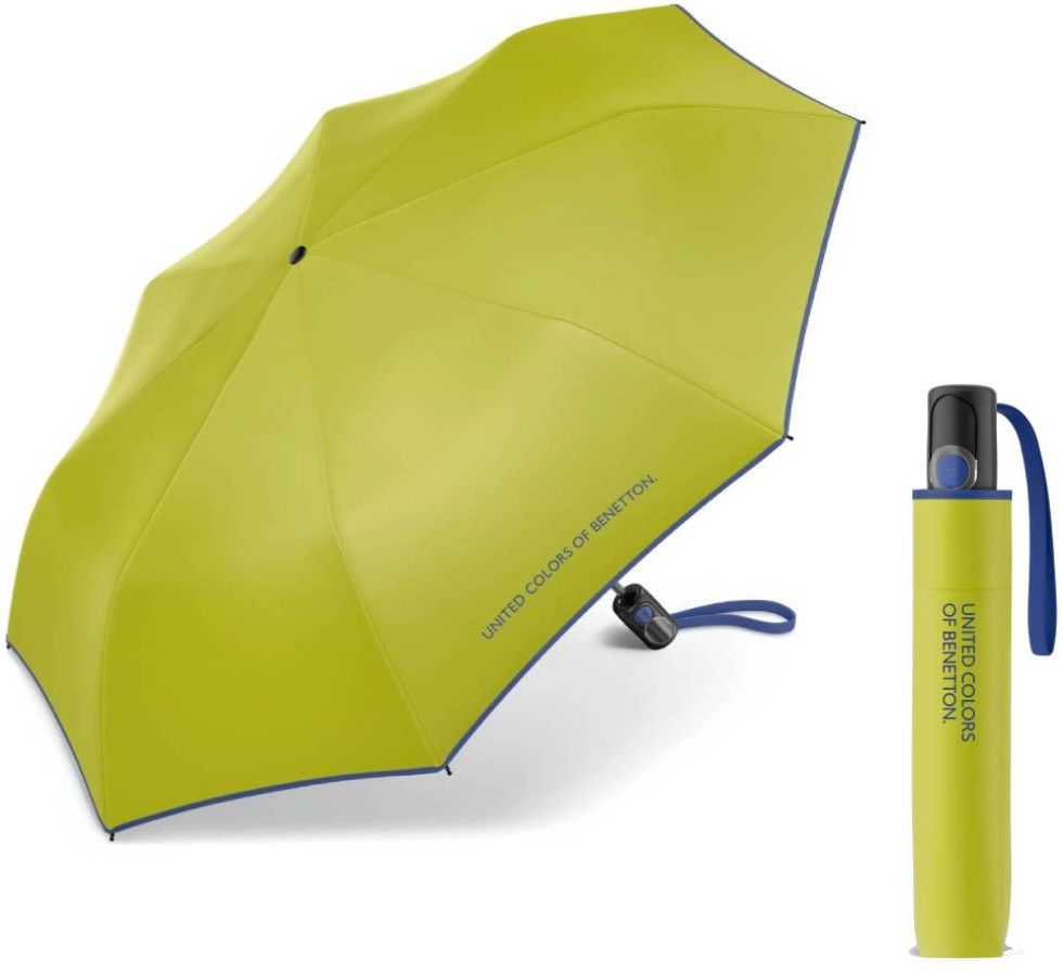 Lekka, kompaktowa parasolka automatyczna chroniąca przed deszczem i wiatrem Benetton Mini AC.