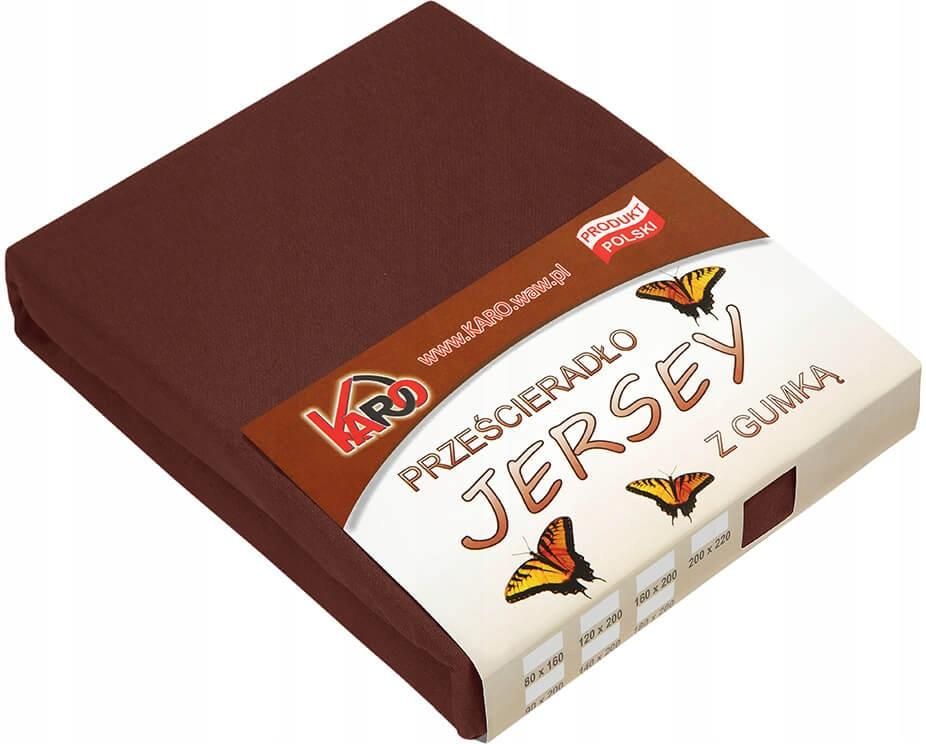 Prześcieradło jersey z gumką 90x200 czekoladowe 042 grube 150g/m2 KARO jest miękkie i przyjemne w dotyku, a spanie na nim to czysta przyjemność. Szeroka gama kolorystyczna pozwoli na dopasowanie koloru prześcieradła do każdej pościeli. Z kolei wysoka jakość zastosowanych materiałów sprawi, że długo będziesz cieszyć się wyborem prześcieradła KARO. Prześcieradło zachowuje swój fason i utrzymuje intensywny kolor nawet po wielu praniach. Rozmiar: 90x200 cm. Skład tkaniny: 100% bawełna, Materiał: jersey - lekko rozciągliwy i niewymagający prasowania, dzięki czemu jest wyjątkowo wygodny w użytkowaniu. Gramatura: 150 g/m2. Zakład prześcieradła wynosi ok. 15 cm i nie jest wliczany do rozmiaru. Prześcieradło przeznaczone jest na materace o wysokości do 15 cm, a zakład liczony jest na rogu prześcieradła. Dzięki bokom z narożnymi zaszewkami, profilującymi prześcieradło do kształtu materaca oraz gumce poprowadzonej w tuneliku produkt doskonale dopasowuje się i układa na materacach o różnej grubości. Przepis konserwacji: prać w temperaturze do 40°C, nie wybielać, prasować w temperaturze do 150°C, nie czyścić chemicznie, suszyć w stanie rozwieszonym. Prześcieradła jersey z gumką KARO występują w wielu rozmiarach tj. m.in.: 60x120, 70x140, 80x160, 90x200, 120x200, 140x200, 160x200, 180x200, 200x220 w ponad 40 kolorach. Produkt własny naszego sklepu, wyprodukowany w Polsce.