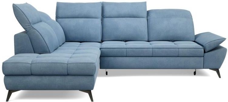 Nowoczesna linia narożnika SIERRA sprawia, że jest on idealnym meblem dla przestronnego salonu.Elegancja wykonania a w szczególności uniwersalna, szaro-niebieska kolorystyka pozwalają dopasować mebel do większości aranżacji. SIERRA doskonale prezentuje się zarówno w jasnych pomieszczeniach, jak i we wnętrzach, które bazują na żywych kolorach i nieortodoksyjnych połączeniach mebli oraz dodatków dekoracyjnych.Jednak podstawowymi zaletami narożnika SIERRA są komfort oraz funkcjonalność. Połączenie pianki i sprężyny falistej oraz regulowane zagłówki i podłokietnik pozwalają przybrać maksymalnie wygodną pozycję. Dodatkowym walorem ozdobnym narożnika jest pikowanie na powierzchni siedziska.Dodatkowymi niezwykle ważnymi usprawnieniami w budowie narożnika SIERRA są pojemnik na pościel oraz możliwość rozłożenia mebla pod kątem nocnego wypoczynku.Narożnik SIERRA posiada dwie wysokości. Przy opuszczonych zagłówkach wynosi ona 87 cm, natomiast przy podniesionych aż 107 cm.Głębokość narożnika przy otwartym pojemniku wynosi 259 cm.REGULOWANE SIEDZISKADwa siedziska posiadają możliwość regulowanej głębokości dzięki czemu możemy ją zwiększyć do 77 cm.SPOSÓB ROZKŁADANIAFunkcja spania typu "delfin" jest prosta w zastosowaniu i nie wymaga odsuwania narożnika od ściany.POJEMNIK NA POŚCIELWystarczy podnieść do góry otomanę, by móc szybko i sprawnie umieścić pościel w przestronnych schowku.WYKOŃCZENIEZastosowana w narożniku SIERRA tkanina obiciowa MONOLITHto materiał o zwiększonej odporności na wchłanianie cieczy i łatwy do utrzymania w czystości.Metalowe nóżki narożnika SIERRA w kształcie gwiazdy wykonane zostały z czarnego metalu wykończonego czarnym kolorem, który świetnie współgra z kolorystyką tkaniny obiciowej.