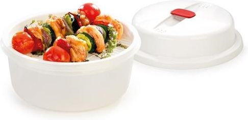 TESCOMA GARNEK UNIWERSALNY DO KUCHENKI MIKROFALOWEJ Doskonały do łatwego i szybkiego gotowania na parze oraz podgrzewania i rozmrażania produktów w kuchence mikrofalowej, z rusztem do grillowania produktów bez tłuszczu oraz z żaroodporną miską do przygotowywania popcornu. Garnek został wykonany z …
