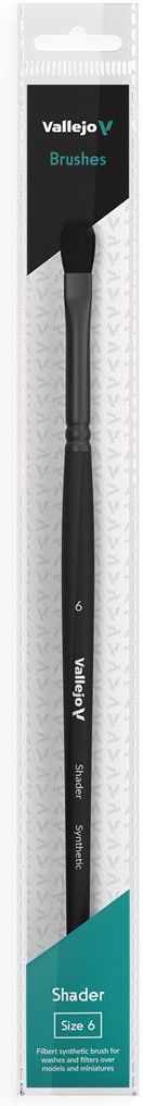 Vallejo B06006 Pędzel - Filbert Shader Flat Synthetic No. 6 - Pędzle do cieni idealnie nadają się do washy i filtrów. Dzięki miękkim włóknom syntetycznym i końcówce z leszczyny zapewniają wszechstronność i wyjątkową zdolność ładowania farby. Idealnie nadają się do pokrywania dużych powierzchni, nakładania podkładów i filtrów, a także do określonych pociągnięć. Dostępne w czterech rozmiarach nr. 2, 4, 6, 8. Pędzelek Nr. 6 Długość włosia: 14 mm Szerokość włosia: 9 mm Symbol produktu: VALL-B06006 Producent: Vallejo