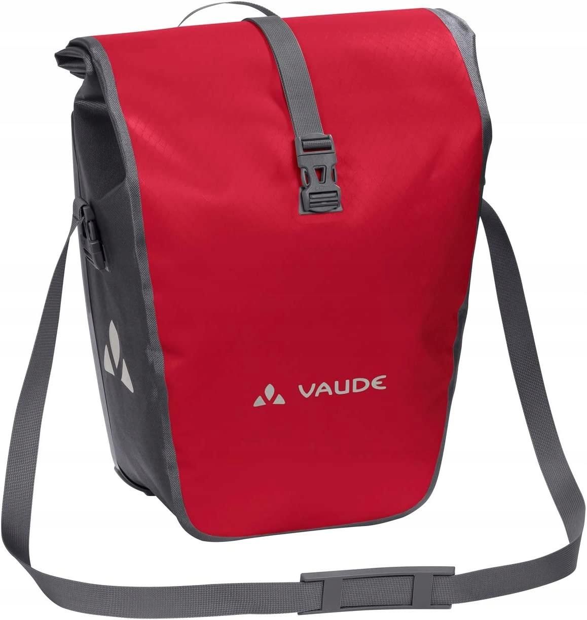 Sakwa rowerowa Vaude Aqua Back. Cechy produktu: Materiał: Poliester Producent: Vaude Model: Aqua Back Ilość: 1 sztuka Mocowanie przy pomocy systemu QMR 2.0. Zapobiega on poruszaniu się torby podczas jazdy po nierównym podłożu Odpinany pasek na ramię pozwoli Ci na wygodne przenoszenie torby Elementy odblaskowe, które podniosą Twoje bezpieczeństwo Pojemność: 24l Waga: 2100 g Wymiary: 37 x 33 x 19 cm Kolor: czerwony Montaż: tył Wodoodporna Produkt ten jest w 100% wolny od związków PVC, które zawierają substancje szkodliwe dla zdrowia Vaude jest niemiecką marką, która powstała w wyniku pasji do sportów górskich. Produkty wytwarzane od ponad 30 lat cechują się najwyższą jakością, która zadowoli nawet najbardziej wymagających klientów. W bogatej ofercie znajdziemy m.in. plecaki i sakwy, które idealnie sprawdzą się zarówno podczas jednodniowych wycieczek jak i w czasie kilkutygodniowych wypraw rowerowych. Wodoodporna sakwa Vaude Aqua Back o pojemności 24 litrów pozwoli Ci na zabranie bagażu bez obawy o jego zamoknięcie. Oprócz materiału przed wilgocią ochroni go specjalne, rolowane zamknięcie, które nie pozwoli wodzie dostać się do środka torby. Stan produktu: nowy oryginalne opakowanie, otwarte, przedarte (dotyczy opakowania)