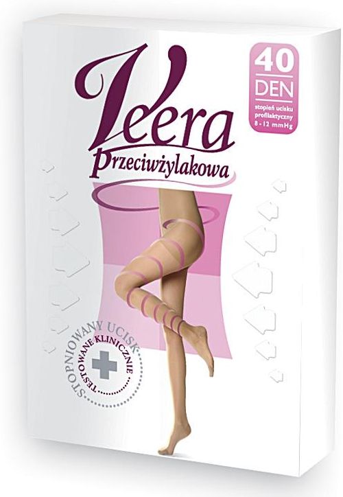 Dlaczego warto wybrać Veera Rajstopy Przeciwżylakowe 40 Den?Rajstopy 40 den I stopnień ucisku 8-12 mmHg Veera Rajstopy Przeciwżylakowe to najwyższej jakości eleganckie rajstopy ze stopniowanym uciskiem. Poprawiają krążenie i perfekcyjnie modelują sylwetkę.Zastosowanie:Veera Rajstopy Przeciwżylakowe stosowane są w profilaktyce i przy pierwszych problemach z krążeniem. Nadają lekkości nawet najbardziej zmęczonym nogom. Przynoszą szybką i skuteczną ulgę w przypadku pierwszych objawów osłabionego kr