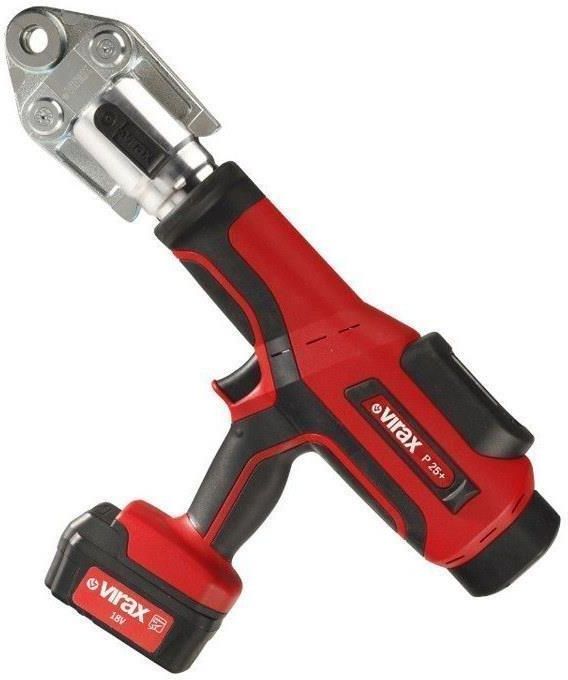 Prasa VIRAX P25+2 aku w skrzynce Zakres: miedź, C-Stal, INOX: 12-54 mm, wielowarstwowe: 12-108 mm Zakres dostawy: napęd, 2 akumulatory 18V/3Ah, ładowarka, w skrzynce VIRABOX z tworzywa sztucznego SZCZĘKI ZACISKOWE U/TH/V/M NA ZAPYTANIE . Zaciskarka elektro-hydrauliczna 32kN zasilana akumulatorem głowica obrotowa 360° z automatycznym powrotem tłoka waga 4 kg (z akumulatorem) szybka praca-cykl zaciskania ok. 5 sekund możliwość zatrzymania cyklu zaciskania przez użytkownika w dowolnym momencie wskaźnik świetlny końca cyklu zaciskania (lub przerwania pracy) wskaźnik poziomu naładowania akumulatora wskaźnik konieczności konserwacji po 20 000 cykli z alarmem przypominającymi po 19 500 zaciśnięć zabezpieczenie przed rozpoczęciem cyklu z nienaładowanym akumulatorem akumulator Li-Ion 18V/3Ah (wzmocnienie SoftTouch, min. samoczynne rozładowanie, brak efektu pamięci) czas ładowania akumulatora (90%) - ok.85 minut rękojeść pokryta antypoślizgowym materiałem Soft Touch® zapewniającym dobry chwyt