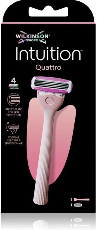 Wilkinson Sword Intuition Quattro, 1 szt., Golenie dla kobiet, Chcesz uzyskać gładką ogoloną skórę ciała lub jej części? Maszynka do golenia Wilkinson Sword Intuition Quattro stanowi najprostszy sposób na szybkie, łatwe i bezbolesne uzyskanie gładkiego ciała. Swoimi ostrzami chwyta każdy włos, …