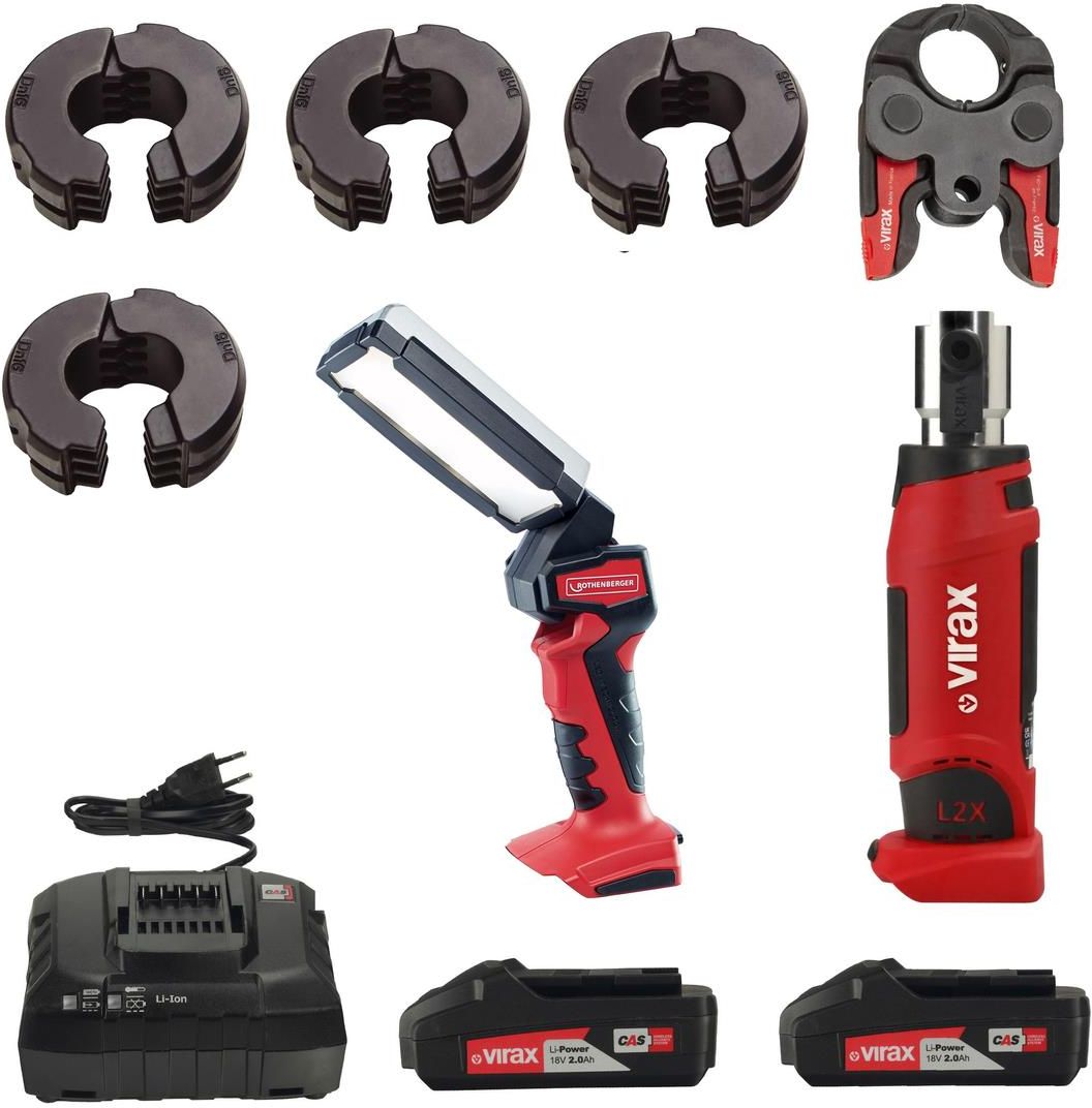 Zaciskarka, zaginarka do rur pex, stal, miedź. Na akumulatory Virax, Rothenberger, Metabo. Wydłużony format: umożliwia dostęp do najbardziej ograniczonych przestrzeni. Sprawdzony produkt: wszystkie zalety techniczne L2X w formie liniowej.