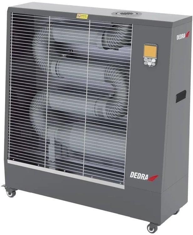 NAGRZEWNICA OLEJOWA NA PODCZERWIEŃ 13kW GRZEJNIK DEDRA DED9976 Ogrzewanie podczerwienią zapewnia równomierne rozprowadzanie ciepła, ogrzewając obiekty i powierzchnie bez strat energii. Emitowane ciepło jest bezpośrednio pochłaniane przez przedmioty i powierzchnie, co eliminuje potrzebę ogrzewania całego powietrza w pomieszczeniu. Ciepło jest odczuwalne niemal natychmiast, a brak ruchu powietrza eliminuje przeciągi i pylenie, co wpływa korzystnie na komfort użytkowania. Taki rodzaj ogrzewania nie wysusza powietrza, utrzymując naturalną wilgotność, a sama praca urządzenia jest cicha. Nagrzewnica została zaprojektowana także z myślą o bezpieczeństwie użytkowania. Ogrzewanie podczerwienią jest bezpieczne, ponieważ urządzenia tego typu nie wytwarzają otwartego ognia, co zmniejsza ryzyko pożaru. Dodatkowo urządzenie wyposażone jest w szereg zabezpieczeń, które jeszcze bardziej podnoszą poziom bezpieczeństwa użytkowania: Przed przeciążeniem Przed niekontrolowanym zapłonem Przed przegrzaniem W przypadku awarii zasilania Wykrywające nieprawidłowości w sondzie temperatury Kontrola zapłonu, płomienia i nieprawidłowego spalania Zabezpieczające silnik (odprowadzanie gazów resztkowych z silnika spalinowego) Nagrzewnica charakteryzuje się także łatwością obsługi dzięki cyfrowemu panelowi sterowania z czytelnym wyświetlaczem LCD. Użytkownik ma możliwość precyzyjnego ustawienia temperatury oraz dostosowania czasu pracy za pomocą timera i opcji automatycznego wyłączenia, co zapewnia wygodę i elastyczność w użytkowaniu. Cechy Szybki efekt ogrzewania – ciepło odczuwalne niemal natychmiast, co umożliwia szybkie nagrzanie pomieszczenia Brak otwartego ognia – zmniejsza ryzyko pożaru w porównaniu do tradycyjnych systemów grzewczych Ogrzewanie na podczerwień – wykorzystuje promieniowanie podczerwone do równomiernego rozprowadzania ciepła, które bezpośrednio ogrzewa powierzchnie i przedmioty Płaski, czytelny wyświetlacz LCD – prosta obsługa z cyfrowym panelem sterowania Timer w zakresie 5-25 minut – umożliwia ustawienie czasu pracy nagrzewnicy, co pozwala na dostosowanie jej do potrzeb użytkownika Wyłączenie czasowe w zakresie 1-24 h – umożliwia automatyczne wyłączenie urządzenia po określonym czasie Zapobieganie wysuszaniu powietrza – nie generuje ruchu powietrza, utrzymuje naturalny poziom wilgotności w pomieszczeniu Komfort cieplny – ciepło jest odczuwalne jako naturalne i przyjemne, podobne do promieni słonecznych Brak nieprzyjemnych zapachów – ogrzewanie podczerwienią nie powoduje nieprzyjemnych zapachów Szereg zabezpieczeń – bezpieczeństwo użytkowania, ochrona urządzenia Płaska, oszczędzająca miejsce konstrukcja – ułatwia przechowywanie nagrzewnicy w przestrzeniach Stabilna podstawa z czterema kółkami obrotowymi – umożliwia łatwe przemieszczanie urządzenia, zapewniając stabilność podczas pracy Dane techniczne Napięcie: 230V~50 Wydajność grzewcza: 13 kW (44 357,85 BTU/h) Paliwo: olej napędowy lub opałowy Zużycie paliwa: 1,03 kg/h Zalecana powierzchnia ogrzewania: 140 m² Zakres temperatury: 0-40° (co 1°) Zużycie energii: 120 W Klasa energetyczna: C Poziom hałasu: >60 dB Pojemność zbiornika: 32 l Wymiary: 950 x 305 x 1050 cm Waga: 46,5 kg